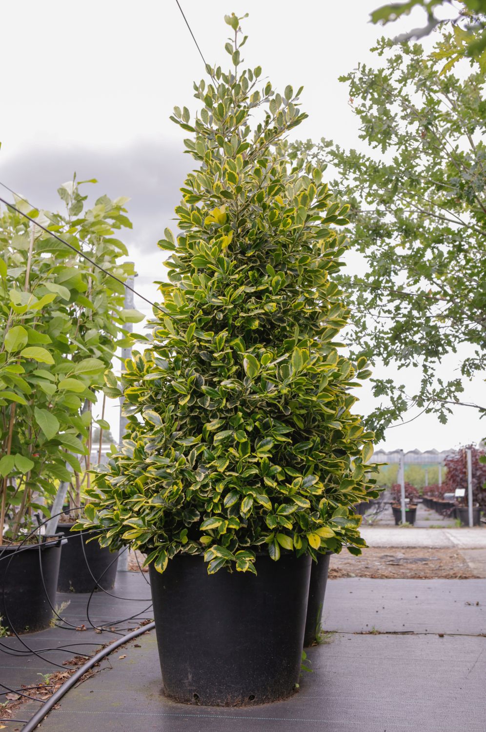 Buy Ilex x altaclerensis Lawsoniana (Holly) in the UK from www.jacksonsnurseries.co.uk Ilex x altaclerensis is an evergreen shrub growing to 4 m (13ft) by 3 m (9ft) at a slow rate. Ilex x altaclerensis golden king. Ilex x altaclerensis 'belgica aurea' produces leaves that are dark green with a yellow edge and are about 10cm in length. Ilex x altaclerensis is a perennial woody evergreen member of the ilex genus in the family aquifoliaceae. It would have a tendency to sometimes remake green branches that must be removed systematically. The glossy green leaves are flat and rounded in shape with beautiful golden yellow variegated margins. This holly was raised by the nurseryman thomas hodgins of dunganstown, ireland, who, some time before 1836, sent it to shepherd, curator of the liverpool botanic garden. Several clones have arisen from deliberate crosses between ilex aquifolium and two subspecies of i.